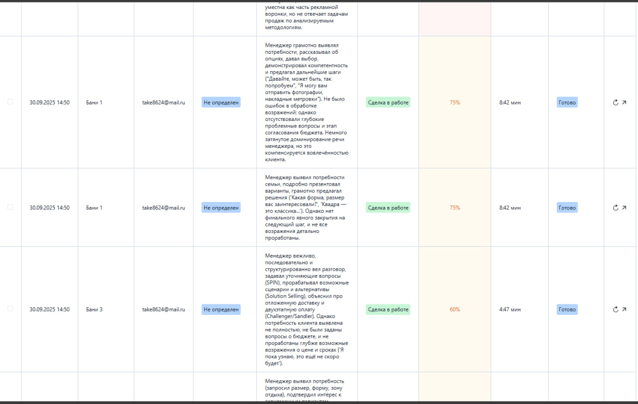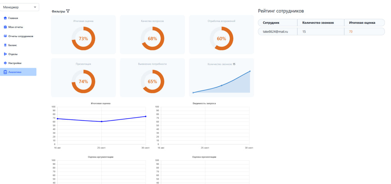 с анализом менеджеров, а сотрудники рекомендации после каждого звонка